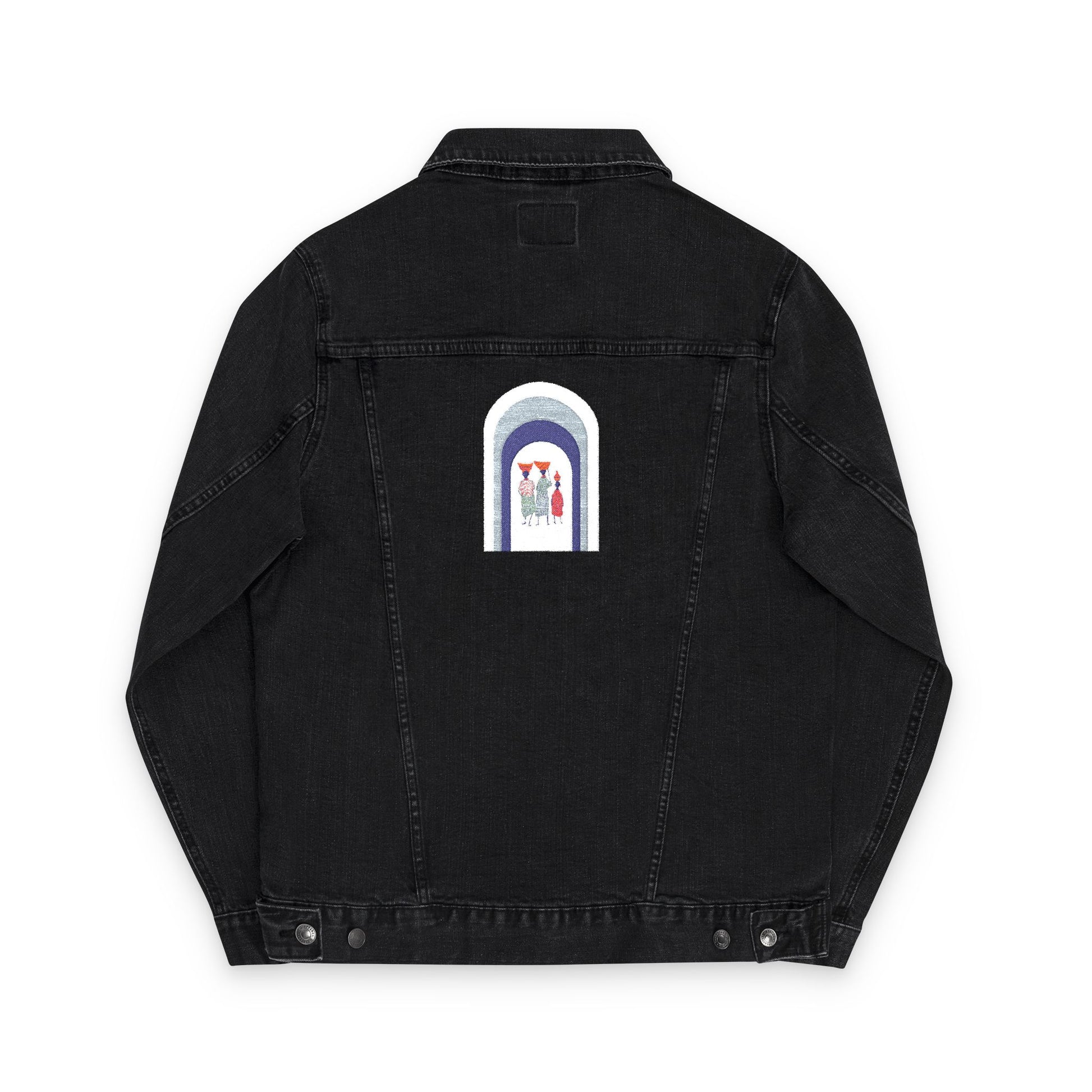 Dinkgwana Embroidered Unisex Denim Jacket, Stylish Outerwear, Casual Fashion, Unique Streetwear