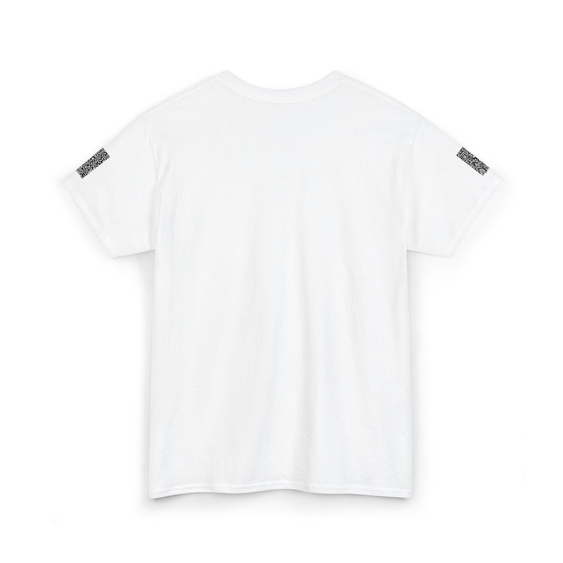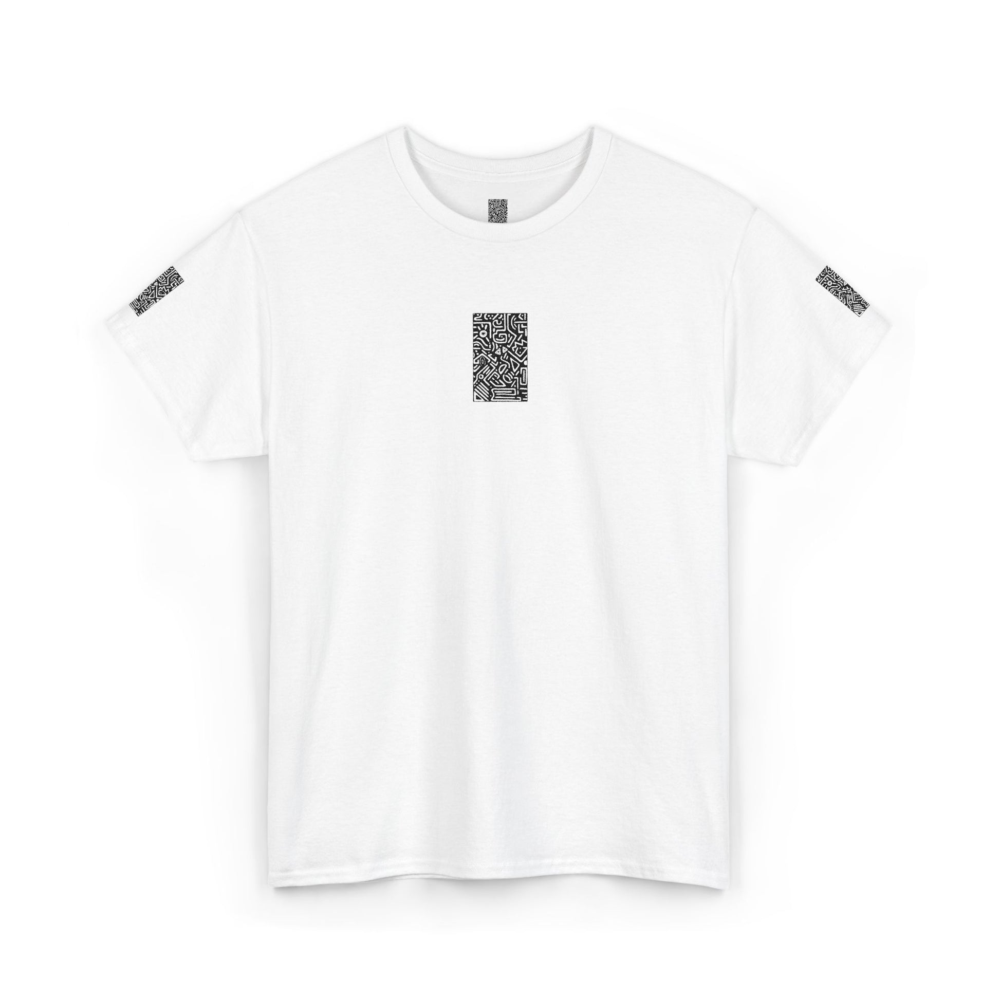 Pulse Graphic Tee — Minimalist White T-Shirt with QR Chest & Sleeve Print