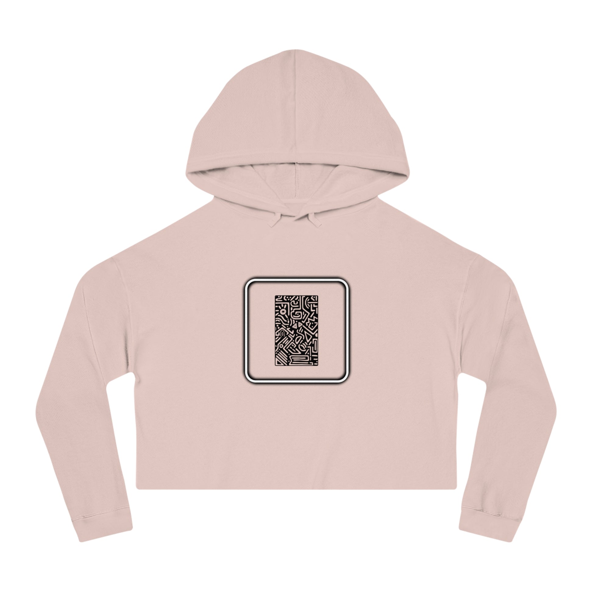 Pulse - Trendy Cropped Hooded Sweatshirt with QR Code Design, Stylish Casual Wear, Perfect for Fall Outfits, Gifts for Her, Unique Street Wear