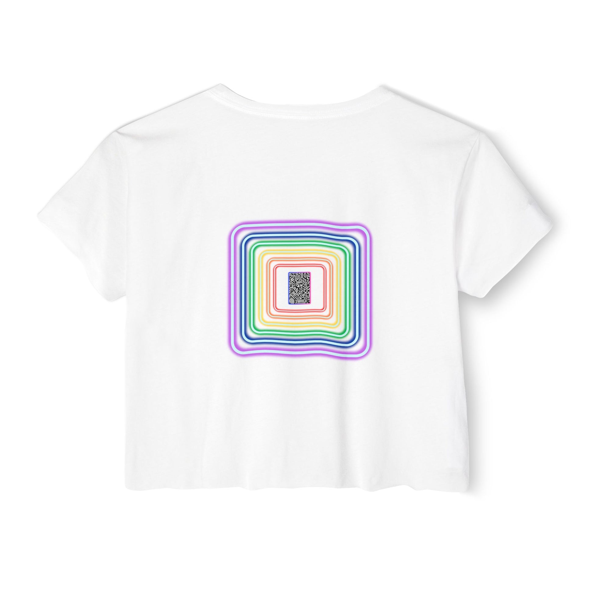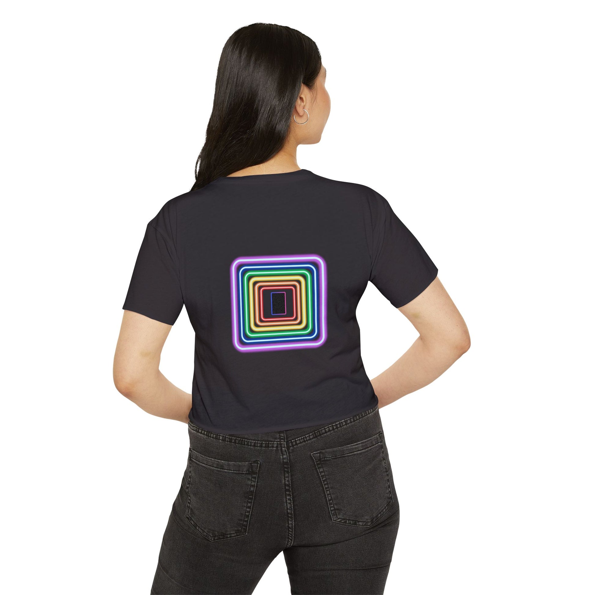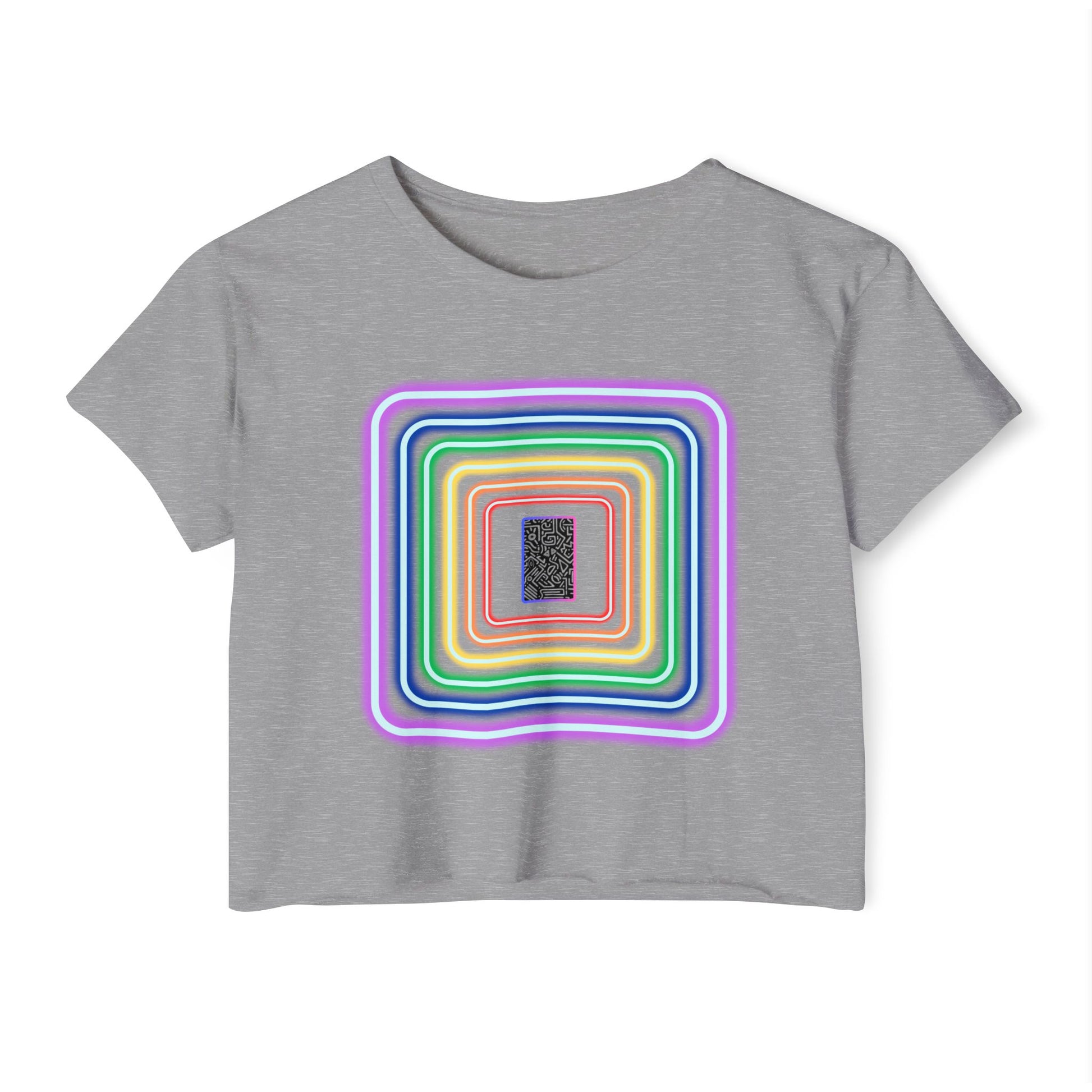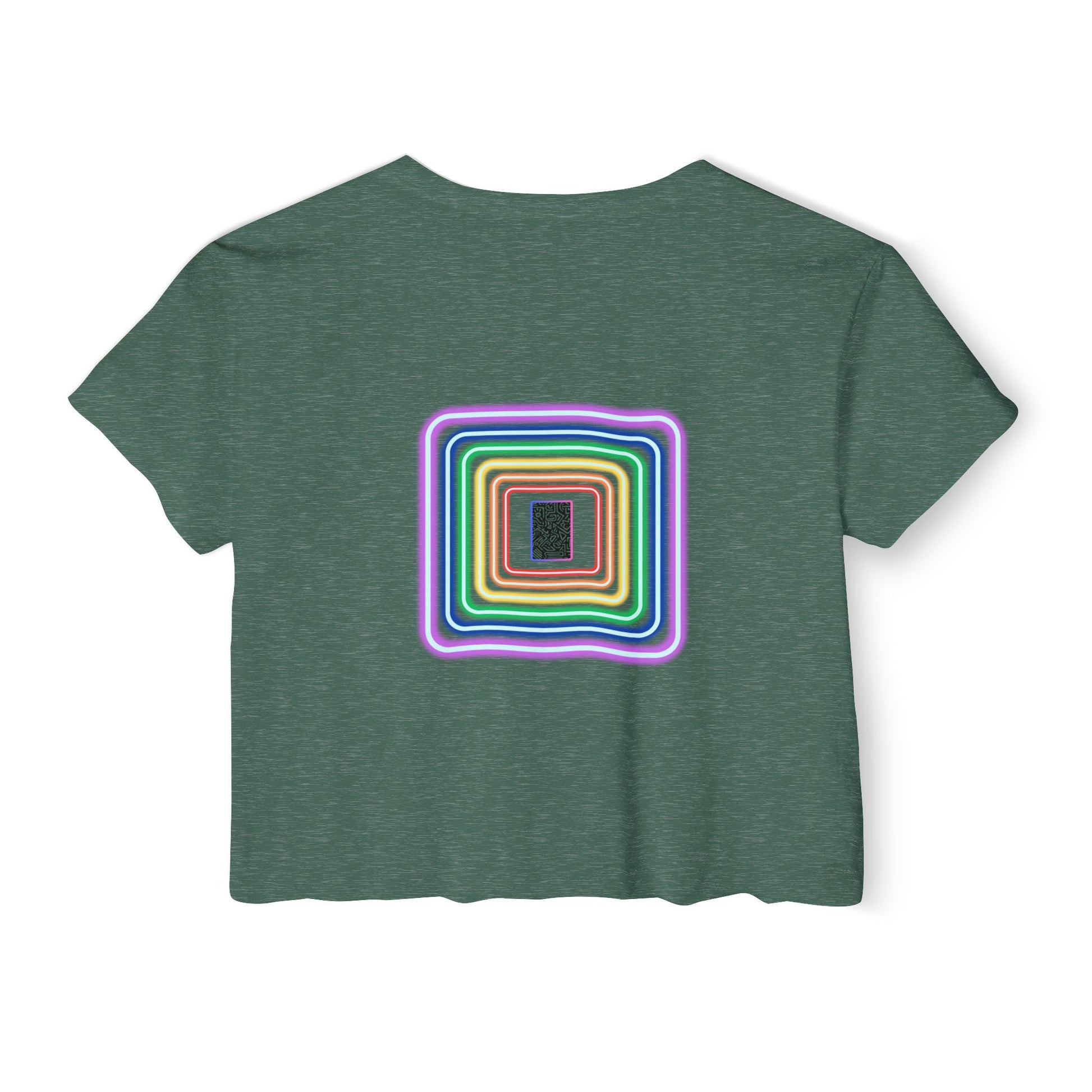 Pulse - Women's Festival Crop Top with Colorful Stripes, Summer Fashion, Stylish Festival Outfit, Boho Crop Tee, Trendy Casual Wear